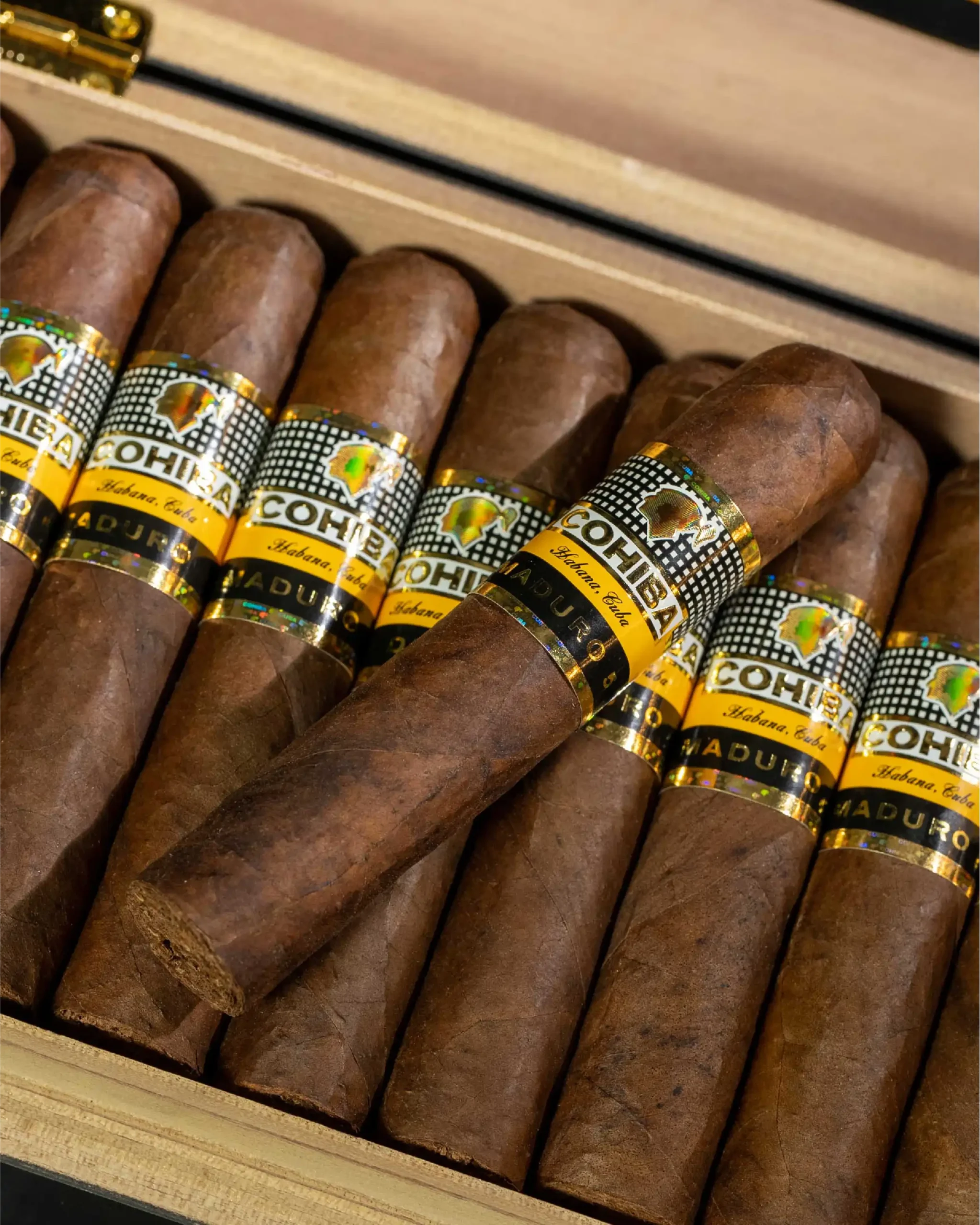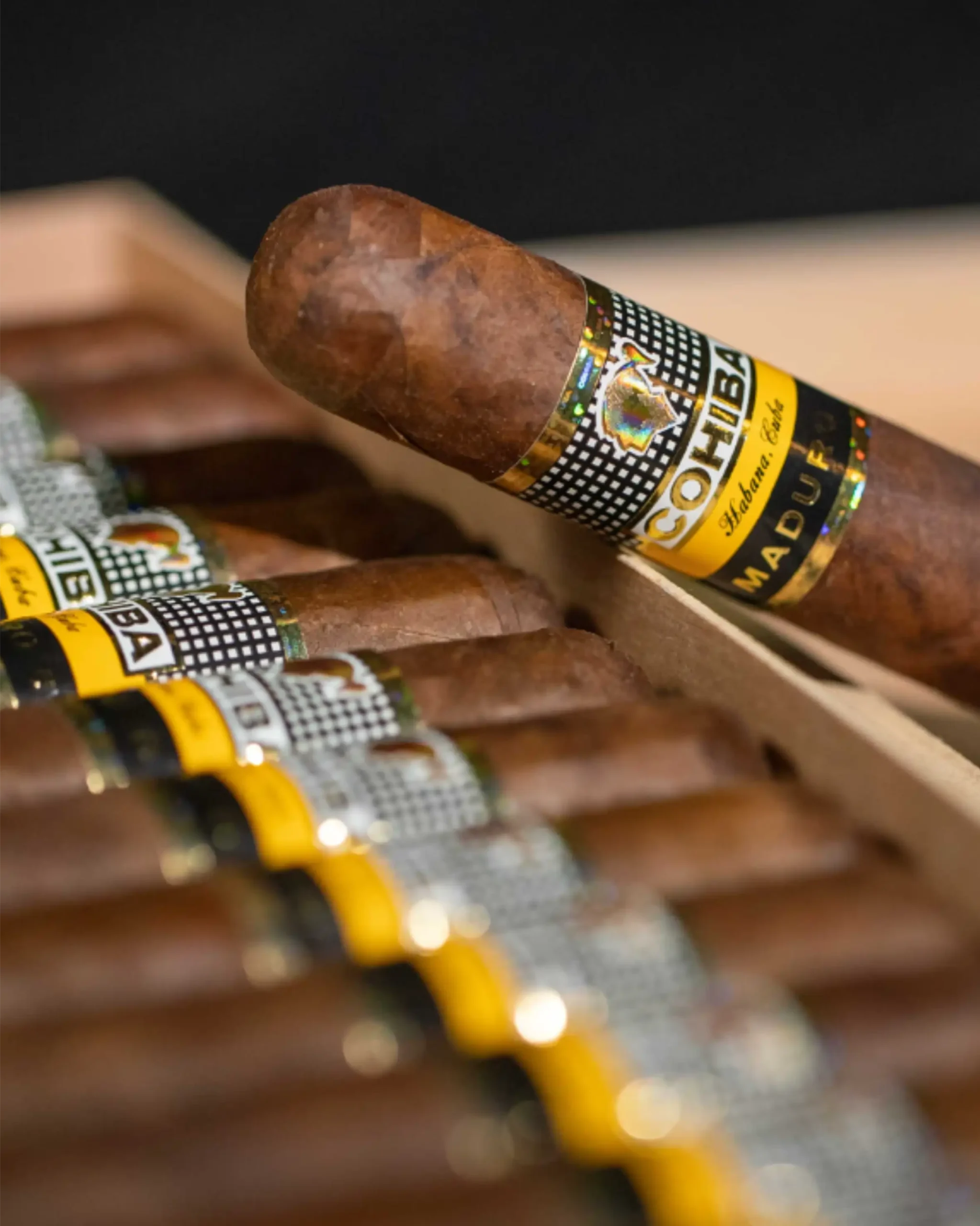 Presented in a classic box of 25 cigars, Cohiba Maduro 5 Mágicos is a refined statement of dark luxury for discerning aficionados.