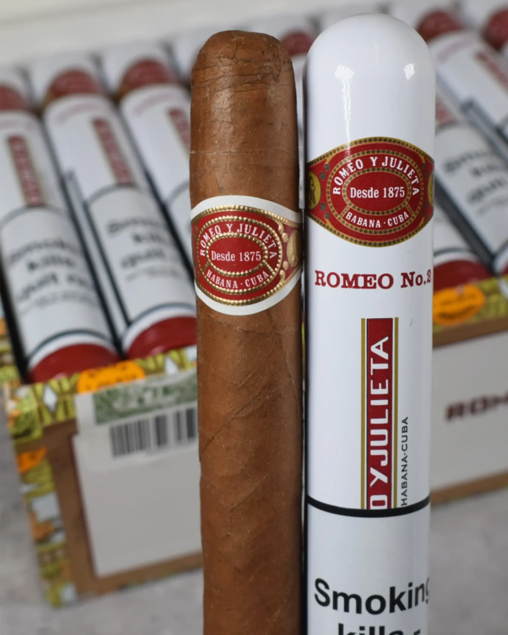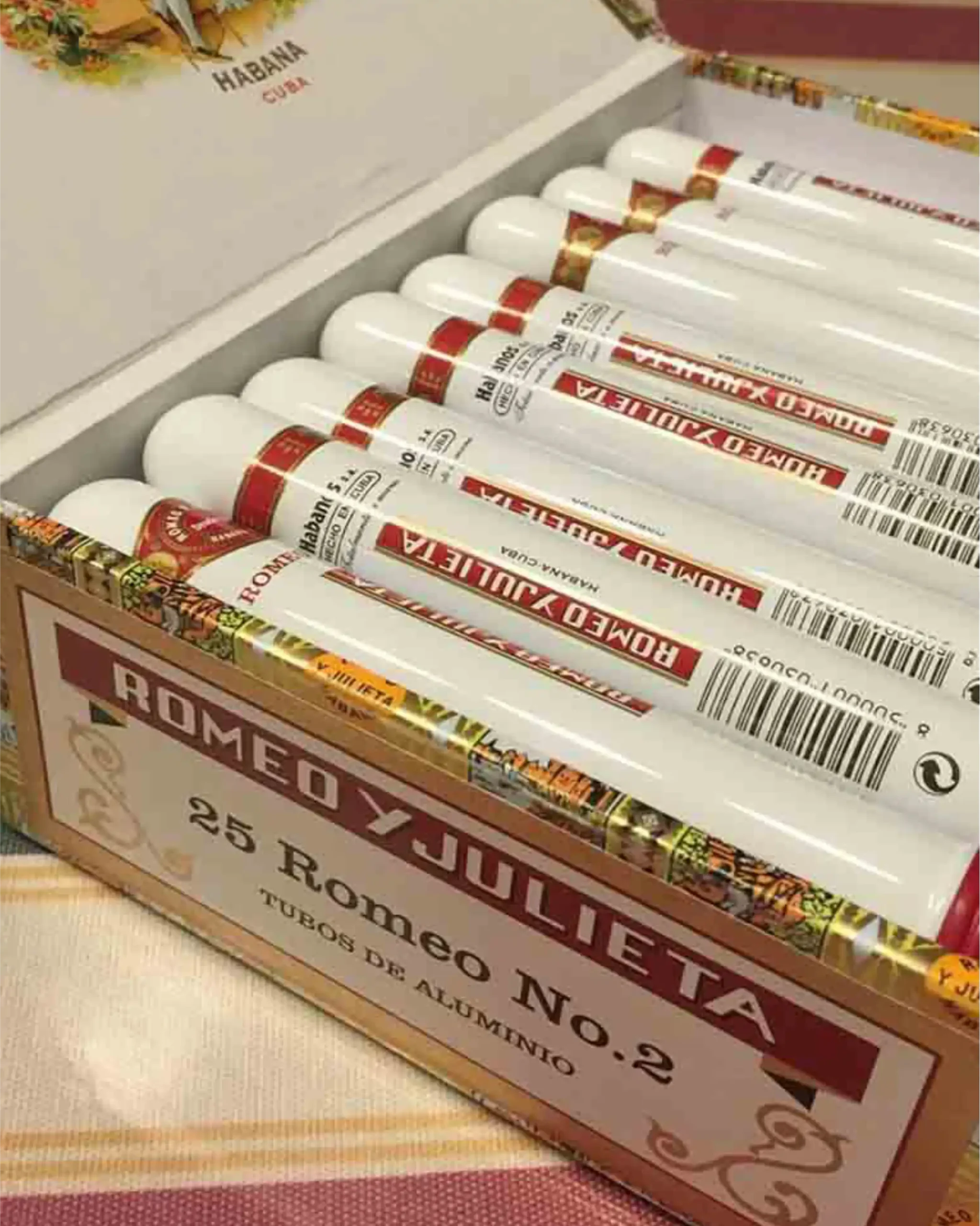 Presented in individual aluminium Tubos, Romeo y Julieta No. 2 Tubos provides excellent protection, portability, and a refined presentation—perfect for collectors and frequent travelers alike.